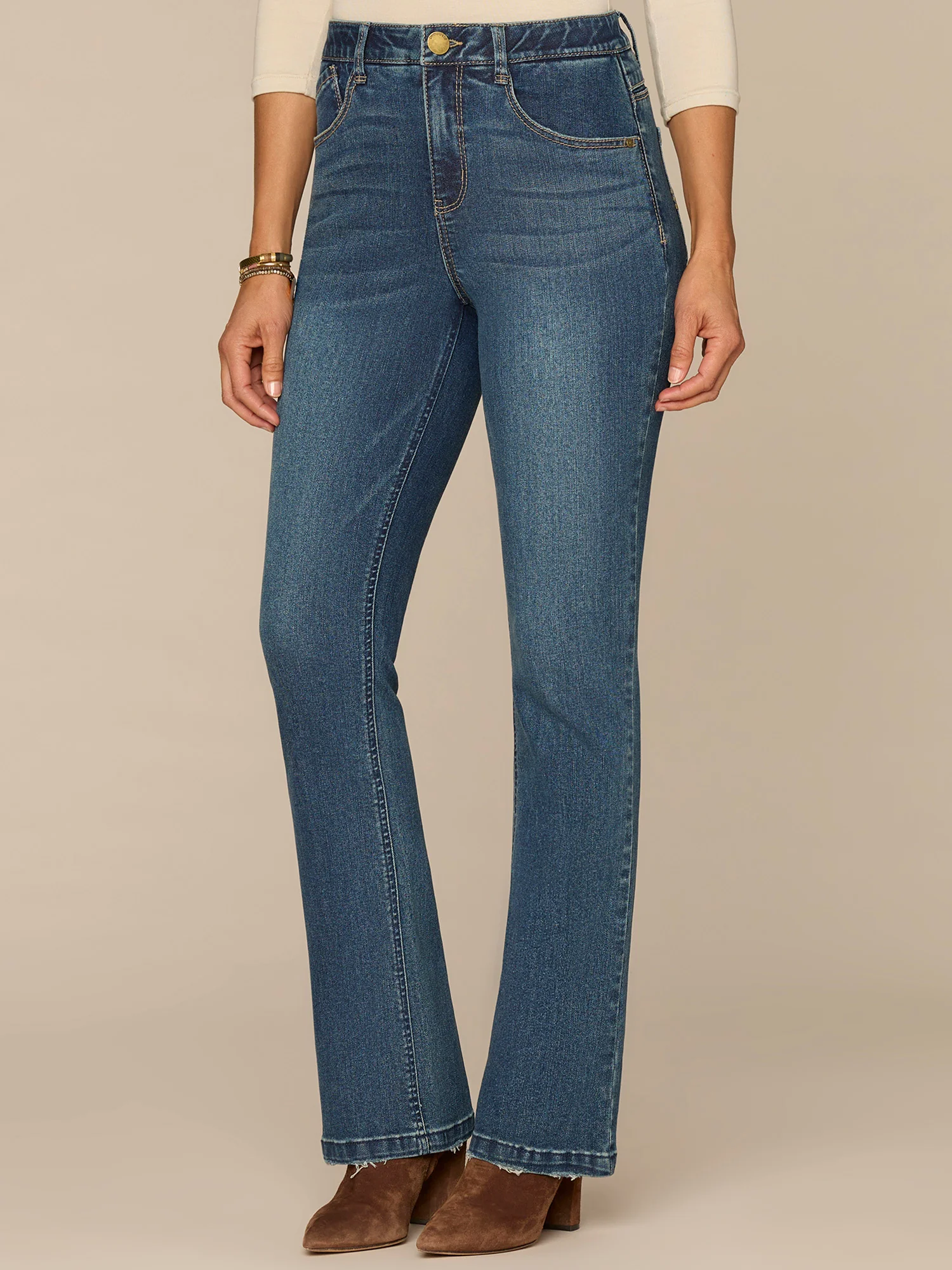 The Itty Bitty Bootcut jean is fitted from the hips to calves, with a baby bootcut leg opening that creates a lengthening effect. Engineered with "Ab"solution® fit technology to smooth, support, and enhance your shape—giving you everything from a flatter tummy to a perkier rear view. Made with recycled REPREVE® materials for a greener solution.