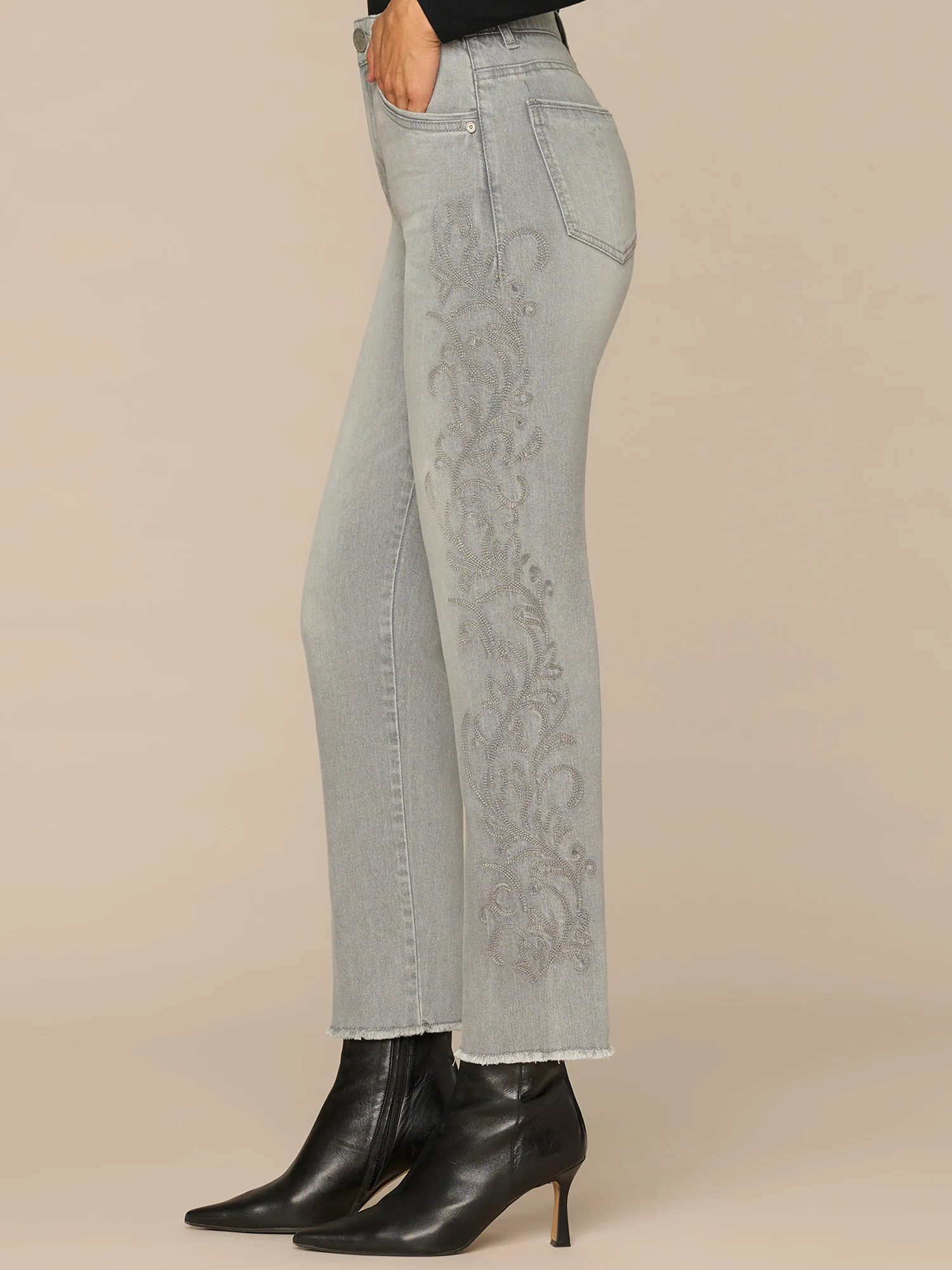 "Ab"solution® High Rise Seamless Embroidered Slim Straight Jeans