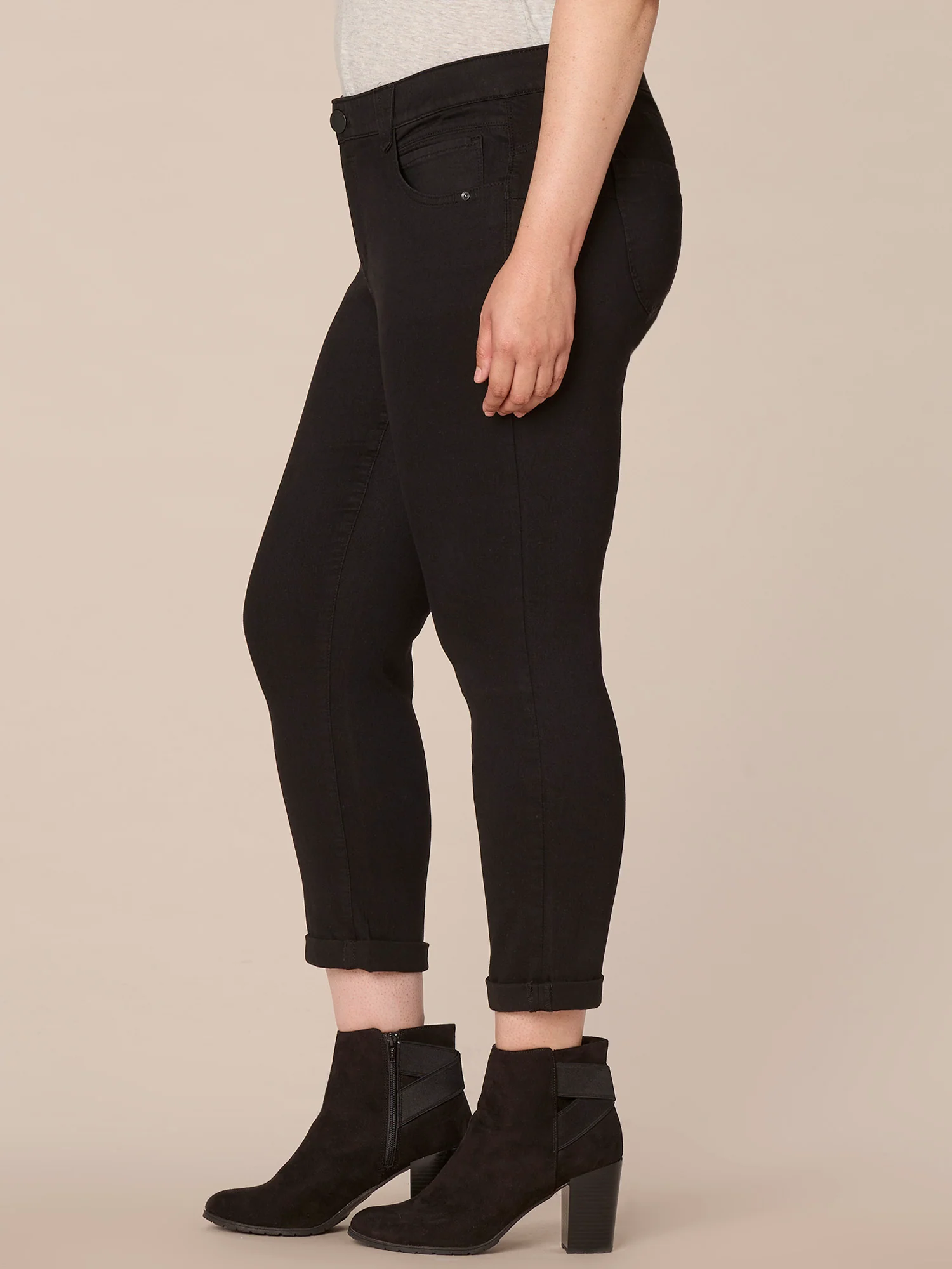 Our black Ankle Skimmer in plus sizing is an incredibly versatile skinny with a curve-hugging fit from hips to hem. Wear it cropped or release the cuff for an ankle-skimming length. Designed with "Ab"solution® fit technology to smooth, support, and enhance your shape—for comfortable support and a flattering, lifted look.