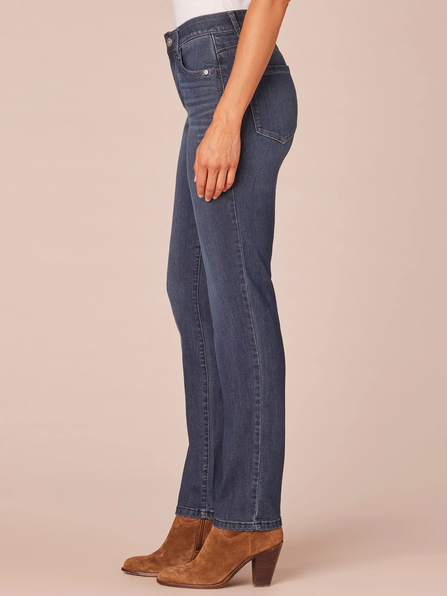 This tall “Ab”solution® Straight Leg jean offers a timeless silhouette with a relaxed, slightly slim straight leg and elongated inseam that’s easy to wear from day to night. Engineered with our fit technology to smooth, support, and enhance your shape—giving you everything from a flatter tummy to a perkier rear view.