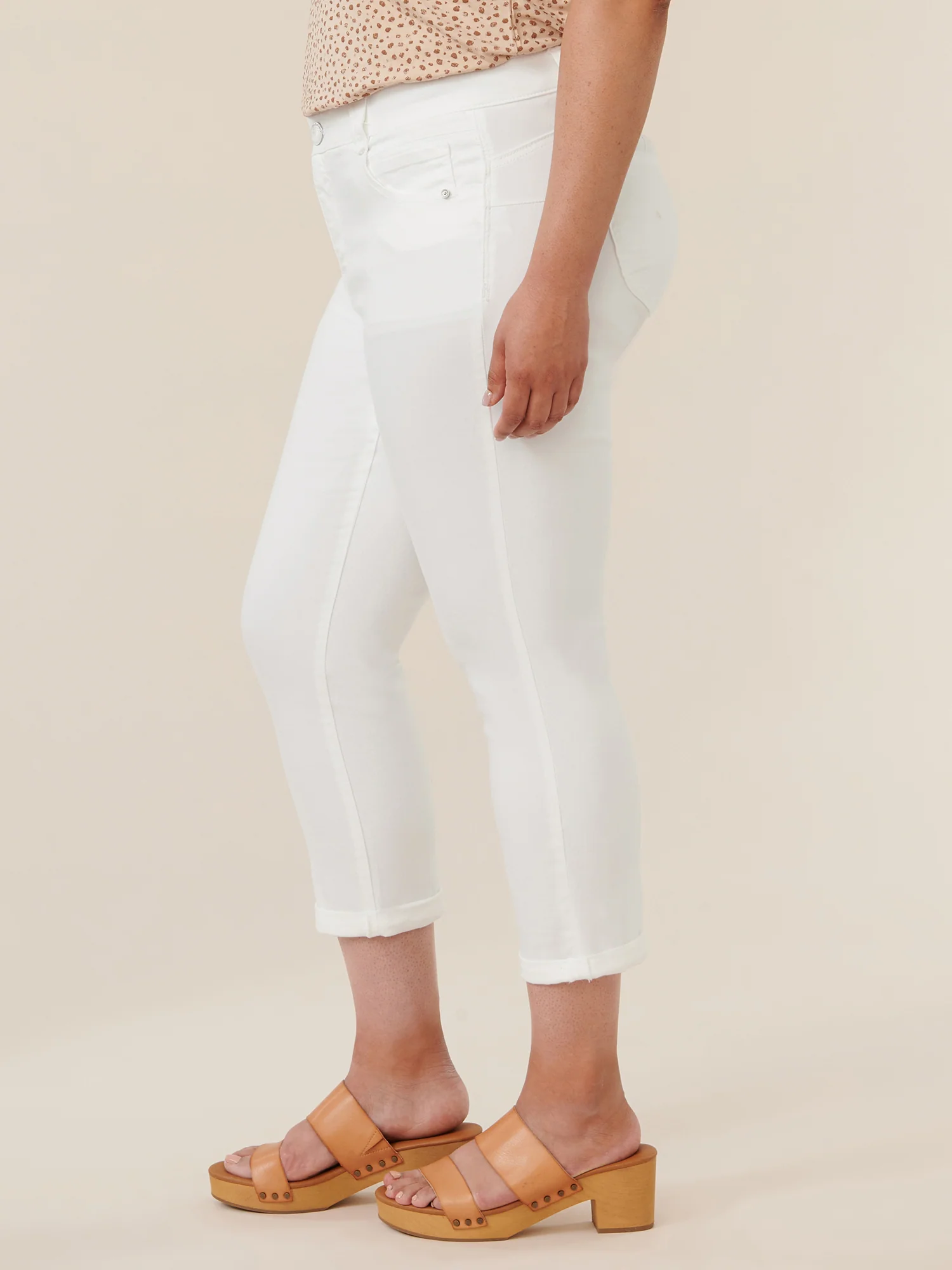 Our Ankle Skimmer in optic white and plus sizing is an incredibly versatile skinny with a curve-hugging fit from hips to hem. Wear it cropped or release the cuff for an ankle-skimming length. Designed with "Ab"solution® fit technology to smooth, support, and enhance your shape—for comfortable support and a flattering, lifted look.