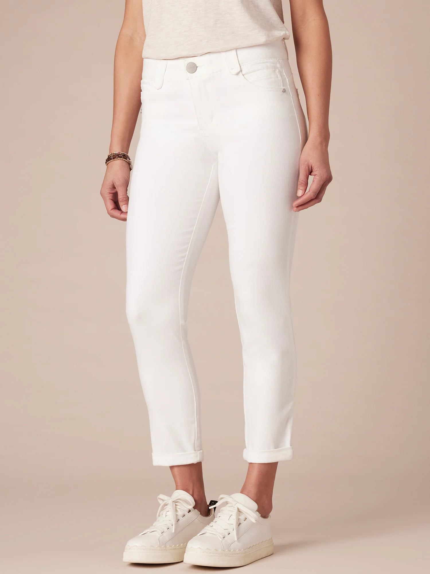 Our petite Ankle Skimmer in white is an incredibly versatile skinny with a curve-hugging fit from hips to hem. Wear it cropped or release the cuff for an ankle-skimming length. Designed with "Ab"solution® fit technology to smooth, support, and enhance your shape—for comfortable support and a flattering, lifted look.